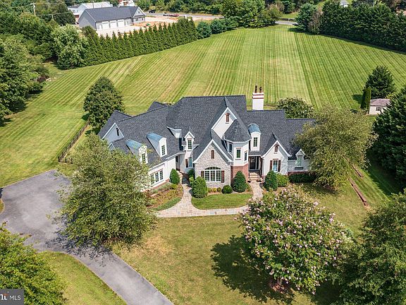 This incredible storybook home is something out of a fairytale. Located in Western Howard County in the coveted Warfield’s Grant community. Sited on over 3 acres of beautifully lush, green space and professional landscaping. From the moment you arrive, you will feel like you’ve been transported to the French countryside. Stunning detail throughout graced with intricate molding, exquisite hardwood flooring, a two-story great room, formal stairs, back stairs, a plethora of sunbathed windows, and an exceptional main-level primary suite. Formal dining is ideal for entertaining. Gorgeous kitchen appointed with energy-efficient stainless-steel appliances, custom cabinetry, two ovens, breakfast bar, pantry, and a casual dining area. The inviting Great Room offers a lovely fireplace, built-in shelving, and access to the terrace. The exceptional main-level primary suite boasts a fireplace, crown molding, two walk-in closets, and patio access. Rest your cares away in the luxurious primary bath accentuated with separate vanities, an air-jetted soaking tub, glass enclosed shower with seating, and a water closet. Travel up the back stairs to find an expansive second bedroom or optional family room highlighting an en suite bath and a private balcony. Three additional bedrooms, a dual entry bath, a home office, and a view of the Great room conclude the upper level. Outdoor entertaining will be effortless from the comfort of the terrace, multiple patios, balcony, exterior powder room, and hot tub. Captivating view this home is the embodiment of Maryland’s good life!