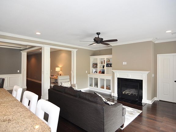 Luxury ranch w/large bonus and full bath! Open floor plan w/beautiful columns, brick and stone exterior, hardwood floors throughout the main level, custom cabinetry w/granite tops, stainless appliances, large pantry, breakfast room, formal dining room w/coffered ceiling, main level office/4th BR, custom lighting, tiled shower w/glass door in master bath, whirlpool tub, fireplace in family room, 2 car garage, covered back porch, level lot.