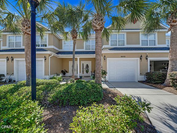 Gated townhome community situated between Pier Park and the Hathaway Bridge. Spacious 3 bedroom, 2.5 baths, two-story townhome with an attached garage. The upstairs features three large bedrooms, laundry room, linen closet and two full baths. The primary bath has his and her vanities, whirlpool tub and a walk-in shower. First floor has a tiled entry foyer, half bath, beautiful built-in microwave and Corian counter tops. Home to cpme furnished