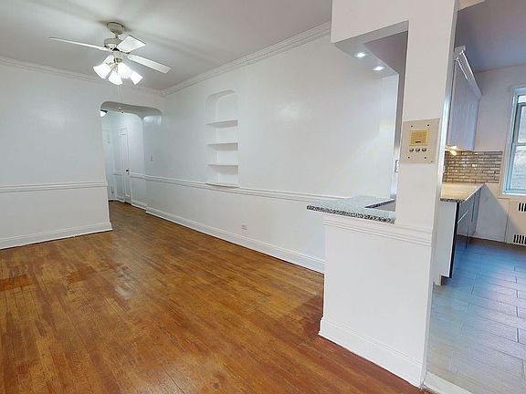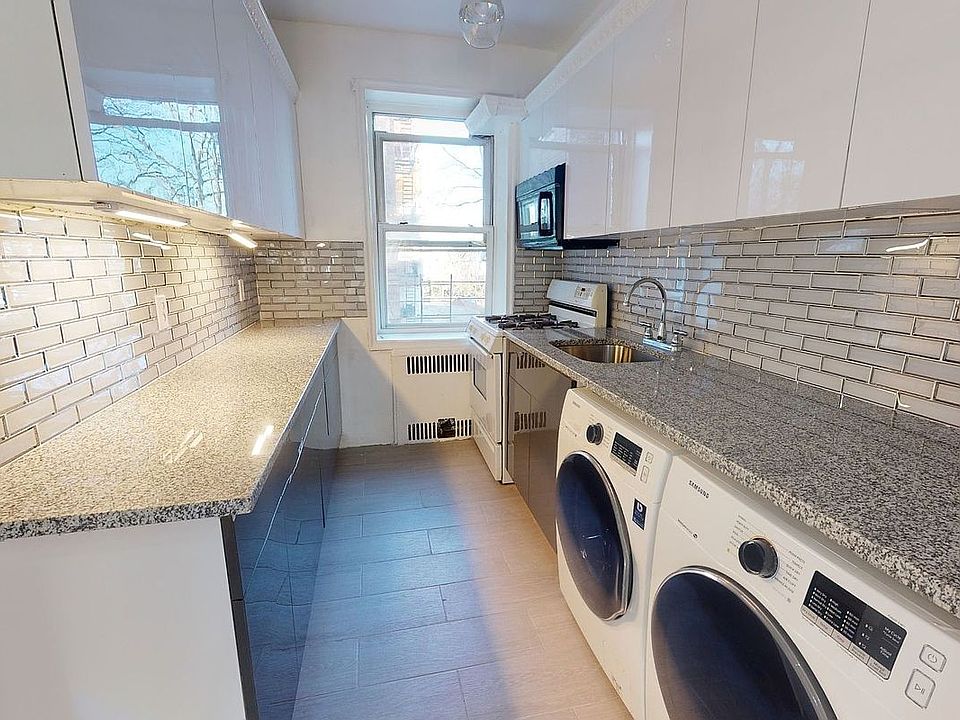 Welcome to this renovated and spacious 2 bedroom apartment located in the Waterfall Garden Building. Walk up to the building and you will love the waterfall scenery located inside a charming residential block. Enter the apartment and you will notice the airy foyer where a big walk in closet is located. Step into the nice size dining room with hardwood floors throughout that then leads you into a formal living room. The kitchen has been updated and renovated with quartz countertops, new appliances and new washer and dryer. There are two nice size bedrooms and the bathroom has been updated as well. This apartment has a parking space available for one car for $115/month and storage room available for $35/month. This building is gorgeous with a stunning lobby, a part time doorman, and a beautiful waterfall fountain right outside. You'll definitely enjoy your time here. Pet friendly. Close to the Q train as well as World Famous Di Faras Pizza, collage, public library and many restaurant.