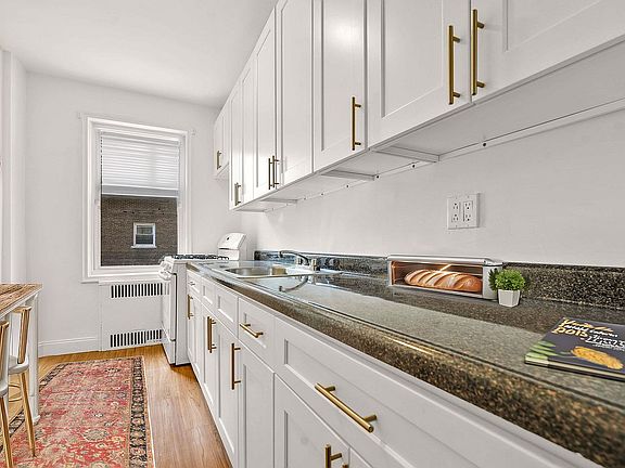 This spacious home features oversized rooms, radiant natural sunlight, original prewar details, hi ceilings and ample closet storage. There's an affordable Monthly Maintenance of $577.50.