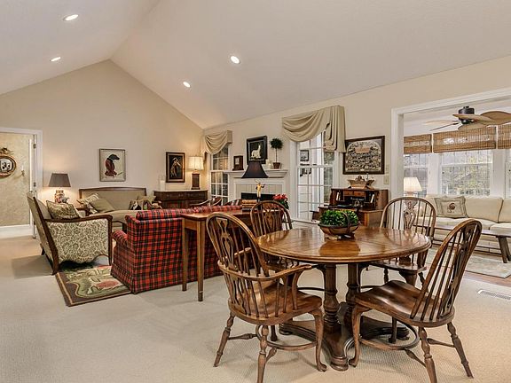 This charming townhome in the Bretton Woods community offers extra living space with the addition of a beautiful Carolina room, the owner's favorite spot. The fenced entry courtyard is paved with brick giving the home an ''outside room'' framed by lovely landscaping. Highlights include vaulted ceilings in the living and master bedroom, a fireplace, recessed lighting, plantation shutters, ceiling fans, and neutral colored walls. Additionally, the owner has a brick floored storage area in the crawl space that is nicely covered with a moisture barrier, a four year old roof, and two car garage. This well-loved and well-maintained townhome exudes warmth.