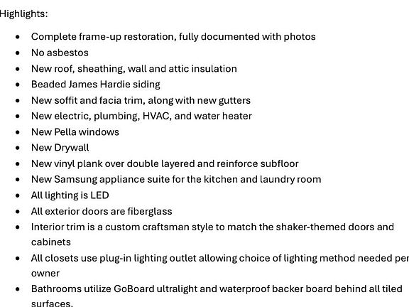 Brand-new roofModern tile workCustom cabinetryEnergy-efficient windowsLuxury flooringFresh drywallSpacious back deck