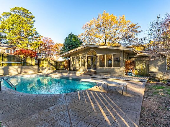 Welcome to Market 1602 Castle Dr. of Jonesboro, AR within the Castle Heights Sub., part of the Jonesboro School District. Situated on a .48 acre cul-de-sac lot in the heart of midtown is a move-in ready Mid-century Modern Ranch Showstopper awaiting a new owner. Built to last in 1979, this uniquely designed & updated property features 3,816 sf of well laid out living space. On the main you'll find an open concept floor plan that contains a living room w/ access to the outdoor balcony, hip kitchen/dining area featuring a gas fireplace w/ brick surround, and a magnificent sunroom w/ panoramic pool views. The living quarters hold a Master w/ walk-in closets and an en-suite w/ jet tub, walk-in shower, and vanity, bedroom w/en-suite, and a spare bedroom. The walkout basement contains a living area, bedroom, and full bath. You'll love the vaulted ceilings w/ wood beams, rich crown molding, glorious natural light through large windows, 2 car garage w/ storage, and lush landscape. Conveniently located near favorite local amenities such as MacArthur Jr. High School, Jonesboro Country Club, and retail & dining establishments. Call today to schedule your tour and make this MCM house your home.