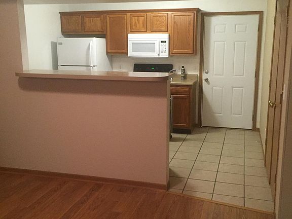 One bedroom/one bath downstairs, three bedroom/2 bags upstairs. Laundry hook ups, newer hard surface flooring throughout with newer paint. One car garage with opener. $850 per month with one months rent security deposit. Pets OK with pet deposit. Lawn care provided