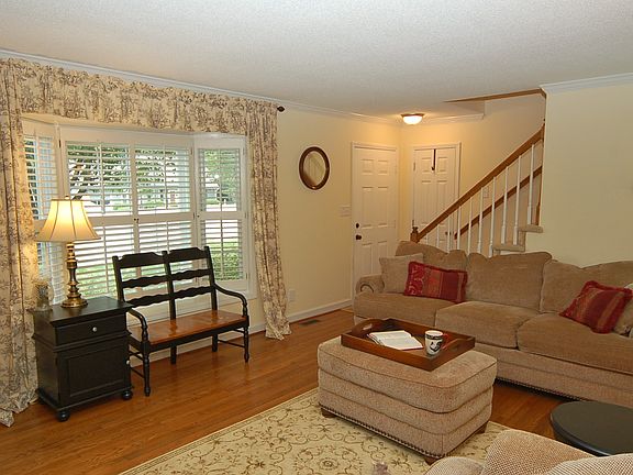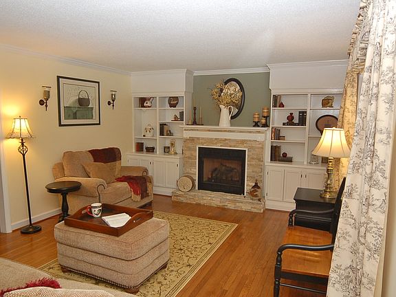 This updated home is ready for you! 4 large bedrooms. Freshly painted, newer efficiency windows, hardwood floors, wood molding. Updated kitchen with s/s appliances, tile backsplash. Living room has beautiful stone fireplace flanked by built-in bookcases. French doors open to sun porch and new long lasting composite deck. A beautiful private cul-de-sac setting. Low maintenance with so many upgrades. HOA pays for lawn care. An alternative to townhome living. A lot of home for the price.