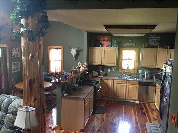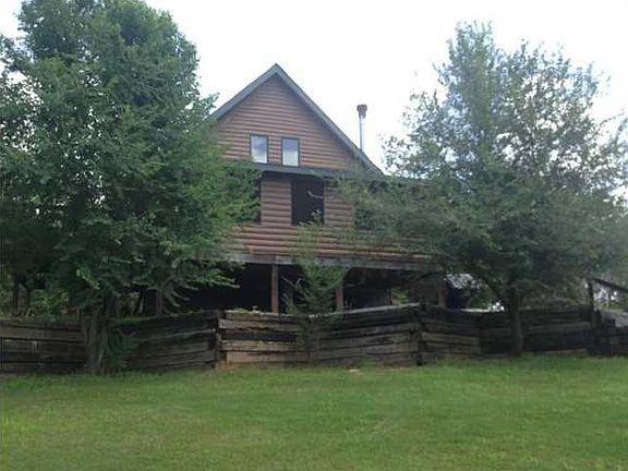 This is a great deal on a property that has approx. 25.91 acres. House and 3 1/2 acres spring fed stocked pond. The house is a lodge style home with beautiful cedar floors. high ceiling, big fire place and open floor plan. There is a huge sun room off the great room over looking the pond. The pond is fully stocked and is fed by 8 springs. Even in the dryest of times the pond is full. There is a covered boat dock and outdoor cookout kithchen area on the dock. This property is very private surounded by timber.