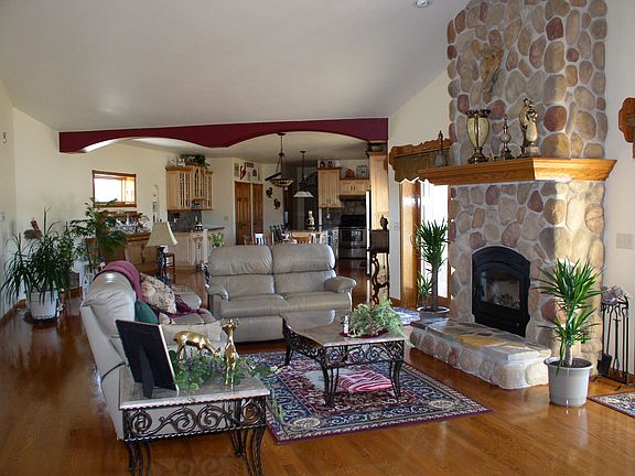 Single Story, 6.5 Acres , Large Kitchen , Oak Floors, Large Master Bedroom , Large Office, Large Deck and Covered Patio , Concrete Driveway, 3200 sq. ft. Heated Shop, Lower Level Bedroom Suite w/ Bathroom, Terraced Garden, Pond, Yard Sprinkler System, Whole House Generator
