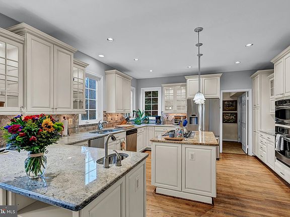 Nestled on a quiet cul-de-sac in Vienna is an elegant executive home with 4008 square feet on a generous .66-acre lot. The carpeted upstairs boasts 5 bedrooms, 3 1/2 bathrooms, including a spacious master suite with an attached sitting room and a second master with an en-suite. Crown molding, high-end finishes, and hardwood floors grace the first floor, featuring a large living room with a gas fireplace, an elegant dining room, and a carpeted study with built-in bookcases. The open-concept design at the back showcases a large, upgraded kitchen with a Wolf stove top set in an island, an Adventism oven suite, a trash compactor, a Bosch refrigerator, and an over sized walk-in pantry. French doors lead to a deck from both the breakfast room and the family room, which includes a gas fireplace and a wet bar. The kitchen connects to a mudroom with a coat closet, a second refrigerator, and a laundry room featuring built-in cabinets and a washer and dryer. The oversize two-car garage comes with a convenient storage or work area. This home offers luxurious living with conveyed amenities such as a glass-enclosed lift, full-house generator, entry cameras, a mailbox sensor, security system, and a programmable sprinkler system. The invisible-fenced backyard with mature landscaping provides a serene outdoor space. The expansive walk-out basement allows for recreation or storage and the potential for additional living areas. In summary, 1602 Fremont Lane combines opulent living, ample space for a growing family, and modern conveniences for comfort and security in Vienna.