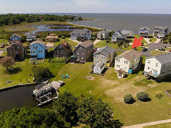 Welcome to your coastal paradise! Get the best of both worlds with canal frontage in the backyard, and gorgeous sunset views over the sound in the front. As you enter the home from the ground level, there is a large seating area, along with a full bath and bedroom. Laundry room is also located on the first floor. The top floor boasts a bright, open-concept living, dining. kitchen area with stunning sunset views from the Albemarle Sound. Kitchen features stainless appliances, and plenty of space for culinary creations to come to life. Three bedrooms and two baths are at the back of the house. Step out onto the front deck to breathe in the salt air and take in the views. There is a great space under the house for grilling and outdoor entertaining, as well as an outdoor shower. New roof in December 2023, Water Heater in 2022, HVAC in 2014. Stainless steel fridge, stove and dishwasher in 2021.Partial furnishings to convey. Community amenities include gated entry, Soundfront park with pavilion, playground, sheltered picnic areas, and designated dog park, marina with launching ramp and boat slips for rent. Optional membership in the Colington Harbour Yacht and Racket Club which includes use of two outdoor pools, tennis courts, and community clubhouse is available for an additional annual fee.