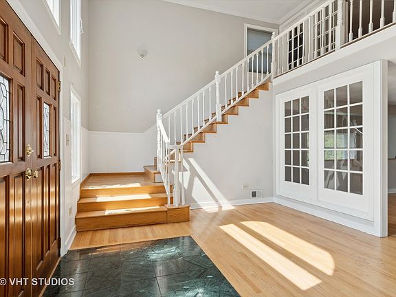 This Downers Grove beauty is one you won't want to miss! Situated on a gorgeous park-like lot, the mature trees and landscape create privacy and the perfect place to entertain. This custom home has 4577 sq ft of living space and a unique and open floor plan with many spectacular architectural features. The dramatic 2-story foyer features a wall of glass that divides the foyer and living room. The living room and dining room have hardwood floors and are a wonderful place to gather. Step into the spacious kitchen with an abundance of cabinetry, granite countertops, stainless steel appliances, pantry and a large window that brings in the light. The kitchen opens to the gorgeous family room with fireplace and sliding glass door to a balcony overlooking the backyard. There are beautiful views across the entire back of the home. The first floor also features a bedroom and office. As you enter the 2nd floor you will love to relax in the primary suite with a sliding glass door to another balcony, walk-in closet, private sitting room and a spa like remodeled bath with stand-alone tub, double sinks and separate shower. Two other spacious bedrooms with hardwood floors and a fully remodeled bath with tub and separate shower also share the 2nd floor. The walkout lower level with rec room, game room, exercise room and a remodeled full bath is where everyone will want to be. Continue the entertaining out on the large paver patio and in the private backyard. You will not want to miss this one of a kind property!