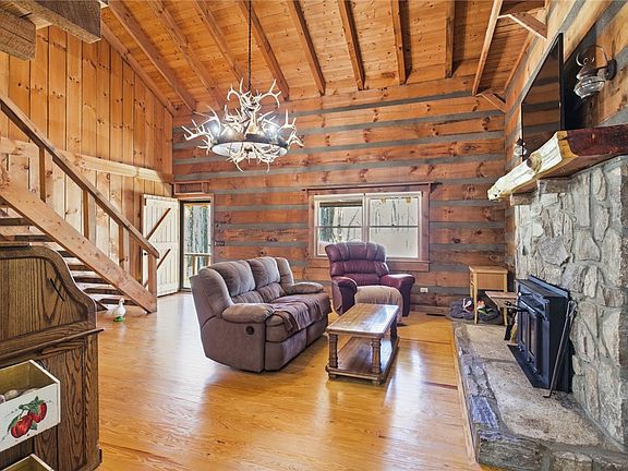 Step inside to find a home brimming with character and unique features. The 3-bedroom, 2-bathroom layout is anchored by stunning original wood floors that run throughout the entire home. In the living room, you can cozy up by the wood fireplace, which serves as the warm centerpiece of the main living area. The kitchen is functional and ready for country cooking with appliances updated around 2012. Upstairs, the loft features a custom-built-in desk, making it an ideal home office or creative retreat with a view. The bedrooms offer ample space, including an additional bedroom equipped with convenient built-in shelving. You will also find storage galore throughout the cabin, ensuring a place for every piece of gear.