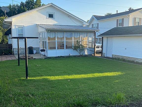 Conveniently located near Eastside Park, hospital, and schools. Lots of updates is this home. Main level features living room, dining room, kitchen, 2 bedrooms and bath plus lower level features possibility of 2 bedrooms, bath, family room, and storage. Enclosed rear sunroom opens out to fenced back yard and 1-car garage plus large storage building or shop.