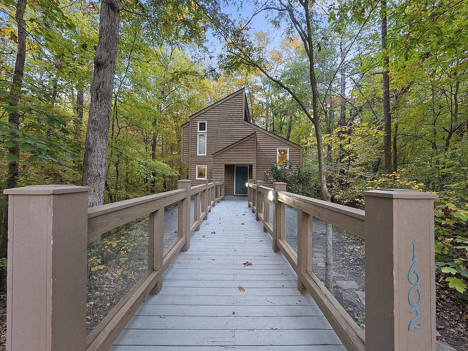 Modernist Home surrounded by Nature! Come home to an architectural jewel by Architect Keith Brown. One of the best homes at this price. Sleek contemporary design full of windows to maximize the best natural light throughout the day. Mult-story open floor plan, Cathedral ceiling in Living Room. Double-sided fireplace between living and dining area. Screened porch overlooking wooded lot with pastoral stream. Hardwood flooring in living area and primary bedroom. Primary suite feels like living in a tree house! Live simply and enjoy peace and serenity surrounding this unique gem in the heart of Durham.