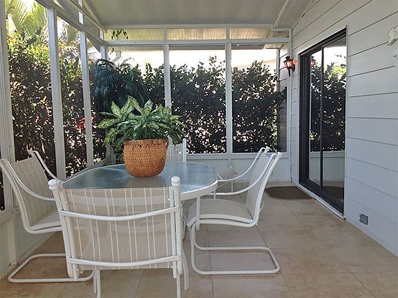 Charming Fully Furnished 2BR 2BTH with lovely dining area and spacious living room leading to your beautiful tiled lanai. Attractive laminate and carpeted flooring throughout this gem! There is also a delightful patio area beautifully landscaped to enjoy as well! A/C Compressor recently replaced. A must see!