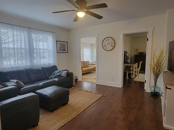 So many updates! This cute home is in city limits but feels like a rural property. The home has 2 bedrooms, equipped kitchen, lovely dining & living room. Beautiful hardwoods, decorated with neutral colors for easy decorating. The home has new siding, facia, gutters, most windows & trim around, mostly new drywall, all new bathroom tub, flooring, lights, stool, vanity, furnace, duct work, c/a, interior doors, storm doors, water heater, garage door, garage door opener, etc. Mostly new wiring. Detached garage, large back yard. Cute! Cute! Cute!