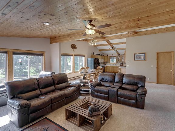 This inviting 2 plus bedroom, 3 bath home/cabin is nestled on an expansive 1.55 acre lot, offering a perfect blend of tranquility on Gull River. Boasting 225 feet of picturesque frontage, this property provides breathtaking views and easy access to tranquil waters for all your recreational needs; whether it be boating, fishing, or just hanging out at the popular sand bar. Home features include vaulted ceilings, newer windows and steel roof, and cozy wood burning fireplaces on both upper and lower levels. Additional space in lower level can be converted into additional bedrooms. It's location is just minutes from Brainerd and the Gull Lake area restaurants and golf courses. This is a Minnesota Power leased lot.