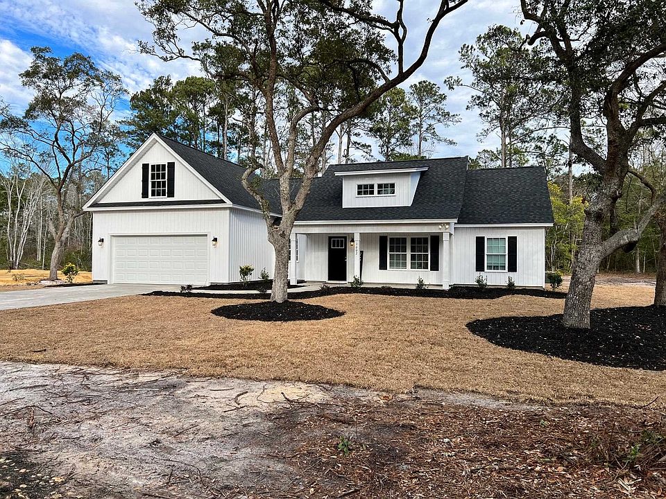 AWESOME OPEN FLOOR PLAN AND NO HOA!!. Boasting board and batten vinyl siding across the front, with a sitting porch on the front. Approx. 55 feet of driveway and 2 Garage bays means lots of parking or space for toys ( kids or adults) . Lot is 0.42 acres. Back Yard patio for grilling. Front porch, patio, pantry, separate laundry room are features not to miss. This home is conveniently located to all things Little River has to offer and a short drive to Calabash or Cherry Grove Beach. Once you call this home you'll never be far away from golfing, fishing, dining, shopping... sand, sun and fun!!!