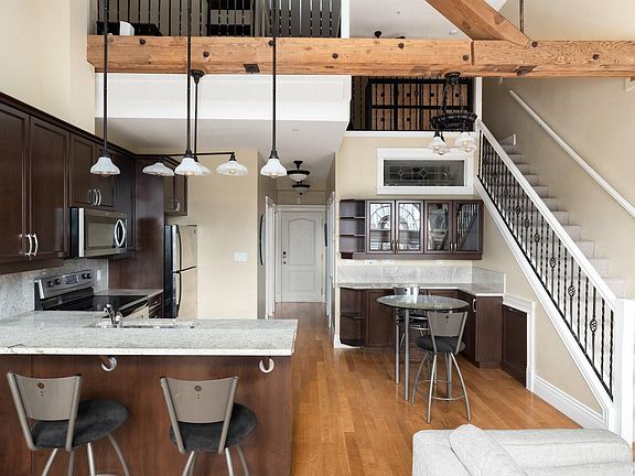 *** OPEN HOUSE SUNDAY 2-4PM *** Stunning wooden beams, soaring ~18' vaulted ceilings, and the most beautiful windows in this two story top level loft that feels like a penthouse! Welcome to The Palladium. A heritage conversion with character and style. This home offers open living/dining, a flex bedroom/office, a full bath on the main, a lofted primary retreat with ensuite + walk-in. Upgrades include a sleek glass-door shower and premium designer fan. This heritage jaw dropper comes with in-suite laundry, secure bike storage, and a stunning rooftop that's made for BBQs and sunsets. The building is pet friendly and rental friendly, and has proven long-term investment income, along with past historical short term rental eligibility. Optional furnishings make this an easy turn-key purchase. Cafés, theatres, groceries at your doorstep, with bikes, transit, and car-share all close by. This is where volume, light, and lifestyle meet — a rare chance in the heart of Victoria.