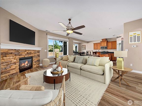 Custom home on a extra-large lot in a quiet Orting neighborhood! The open floor plan offers a hillside view kitchen with granite counters, custom cabinetry, stainless steel appliances and a breakfast nook. A formal dining room with a Casa Blanca chandelier, spacious office/den and wide staircase create a welcoming layout. The generous primary suite features a 5-piece bath an walk in closet while additional bedrooms are light filled and roomy. Upstairs, a large bonus roomy with closet easily functions as a 5th bedroom. Updates include new LVP flooring and carpet throughout. Enjoy extra storage in the garage, plus paved RV parking large enough for a motorhome and boat. With formal and casual spaces, thoughtful updates and plenty of room.