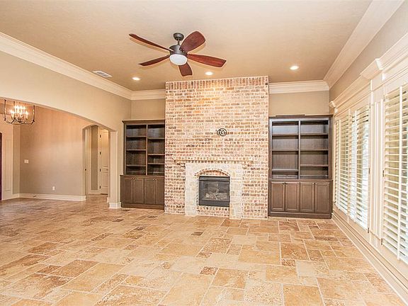 Breath taking Fairway Oaks open floorplan home with all the bells and whistles! Eyebrow double Castle Iron doors greet you upon entering the brick arched and tiled entry way. Showcasing triple crown moldings, coffered ceilings, whole house wood custom plantation shutters, chiseled-edge Versailles travertine flooring thru-out the main living area, bathrooms, master bedroom and closet. Wine bar in the formal dining room. Kitchen is designed for a chef! Pro series range, ss appliances, built in book cases.