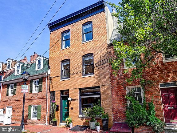 Located on one of the most coveted streets in Fell’s Point, this fully renovated, thoughtfully reimagined historic home marries elegance and modernity with character and charm. Built in 1780, this property of distinction affords the marriage of luxury living with unparalleled lifestyle. The spontaneously convivial neighborhood of Fell’s Point is truly a community, with direct access to the waterfront promenade, year-round farmers market on Broadway Square, proximity to many outdoor festivals and events, and easy walking to amenities like the flagship Whole Foods (3 blocks), upscale shops and restaurants, and unique locally-owned businesses in both Fell’s Point and Harbor East. A meticulously renovated historic façade with a large picture window and original solid wood front door welcomes you into a fresh and open floor plan with 2,124 square feet of living space. The living room is centered on a wood burning fireplace with a salvaged art deco mantel. High ceilings, decorative picture molding and white oak hardwood floors extend throughout this living space and invite you onward to the dining area and kitchen beyond. Large windows and glass doors bring the sunshine and leafy garden vibe into the modern, streamlined kitchen. Extra storage is tucked into every corner of this thoughtfully designed chef’s kitchen, with a built-in banquette for a comfy cup of morning coffee or visiting with friends while cooking dinner. Step outside, from the dining or kitchen areas, into a charming courtyard with bespoke planters, shaded by a mature Japanese maple tree. The patio has ample room for entertaining and grilling, has a handy potting shed, and there is a private walkway, sally port, providing access directly to Shakespeare Street. Newly positioned stairs graciously lead upstairs, with architecturally salvaged spindles and custom carpet runner. Step right into the spacious primary suite, a soothing oasis extending the depth of the second floor. A closet lined dressing room leads to an elegant double vanity bath with an oversized glass shower enclosure and two large, frosted windows that invite in the natural light while maintaining privacy. The second floor front room currently functions as a home office, with an ensuite full bath that incorporates vintage and modern tile. This room also has a large closet and the laundry room. While the current design leaves this room open as a multi-functional space, the owner has designs for enclosing the space into a traditional bedroom suite, should a future owner have that need. A skylight is centered over the stairwell to the third floor, and this sunny spot is home to many cultivations. Step to the left into another generously-sized bedroom with two large, south facing windows, beautiful hardwood floors and two closets. Head to the rear of the third floor and you’ll find the fourth bedroom - another suite - with deep closets lining one entire wall, a well designed full bath with a shower, two large windows, hardwood floors and a door leading to the roof top deck. Enjoy a uniquely Fell’s Point rooftop view of cozy gardens and historic roof lines from a pergola shaded top floor deck. It’s a truly special place to enjoy a relaxing evening with friends and family. 1602 Shakespeare is located in the heart of the historic Fell’s Point neighborhood and is within Area 16, with parking restrictions that are favorable toward residents of the neighborhood. Area 16 is permit parking only after 5 pm., seven days a week. Please see the attached list with details about the home renovations.
