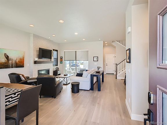 Come take a look at this “like new” (built in 2022) contemporary style home in The Canyons at Castle Pines. Current owner has added approximately $24,000 in additional upgrades with window coverings, backyard landscaping, and appliances. Home built in March 2022, this is one of the largest homes in this Berkeley Homes collection & features 10’ ceilings on the main level, a bright open floorplan, beautiful, upgraded finishes throughout home including but not limited to; quartz countertops in kitchen, custom backsplash, large kitchen island, pantry, stainless steel appliances, stunning fireplace with tile surround and mantle, stylish vinyl plank flooring throughout main level, and an open rail staircase that takes you upstairs to the open loft area that can be used as an office or just another rec space for the family. Also, upstairs are 3 bedrooms including the primary suite with private bath and large walk-in closet, an additional bathroom and laundry room near bedrooms-super convenient! Finished basement includes an additional bedroom (owner used as a workout space), spacious rec room and 3/4 bathroom! Custom plantation shutters throughout home and automatic shades on back patio door. Backyard Xeriscape landscaping and with the HOA maintaining the front yard landscaping-including snow removal in those winter months, you are free to enjoy the Canyon’s many amenities which include a community pool, paths and trails and a community coffee house. Home is set up with Google home automation, if new owner chooses to use. Top rated Douglas County Schools, easy access to I25 and C470 as well as restaurants and shopping.