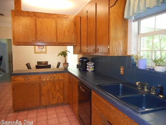 4 BRs, one downstairs with bath.3 BRs upstairs with 2 baths. Great condition pink bathroom w/jacuzzi tub & separate shower. Wide stairway. Living, separate dining. Eat-in kit. Blue tile counter top, gas stove, S/S refrigerator, DW. Laundry room w/storage. 2-Car rear attached carport w/storage room. Detached 2 car garage w/covered carport for boat storage.