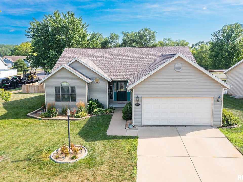HIGHLY DESIRED SUNSET HILLS 4 BEDROOM AND 2.5 BATH BEAUTY WITH OPEN CONCEPT FLOOR PLAN AND CATHEDRAL GREAT ROOM! Private nicely landscaped backyard on nice corner lot with fenced in yard. Large master suite with walk in closet and private bath with tiled jetted tub. Huge 40 feet deep attractive finished rec room in basement plus office area . Pretty kitchen loaded with cabinets and countertop space. Nice gas log two sided fireplace between dining area and great room! New furnace, air and water heater 2022! Great appeal in and out. Covered private patio and porch for entertaining or morning coffee. Over 3,000 sq feet of finished living space!