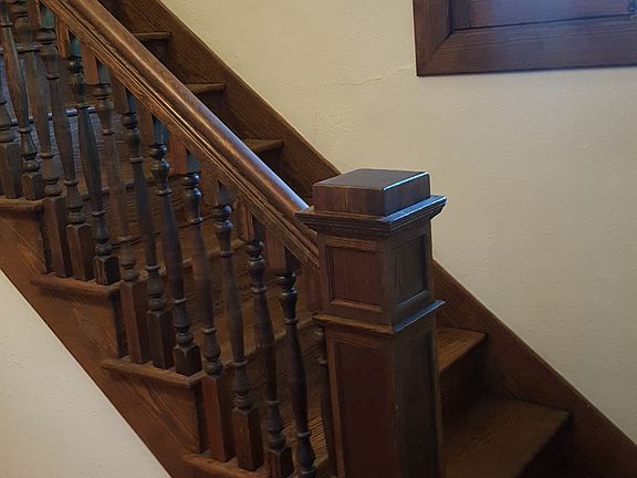 Lovely Victorian set on treed corner lot! Updates since 2007: vinyl windows, Trane Heat Pump CH/A, all new kitchen w/solid surf tops, appliances, and cabinets, HWH, laminate floors downstairs, refinished original wood staircase. Wrap-around porch!