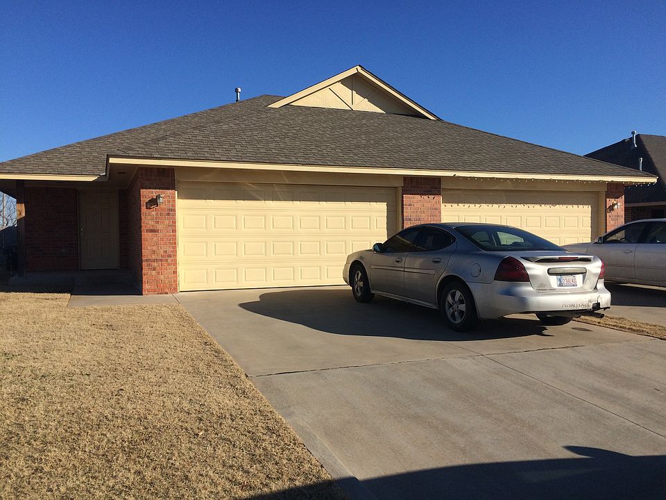Great investment opportunity!! 3b/2b with 2 car garage in Mustang Schools. Seller owns other side of half duplex and will only sell with 1600 West Palm Place as a package. Each side rents for $950. Both sides are currently leased. Property is very clean and on a corner lot.