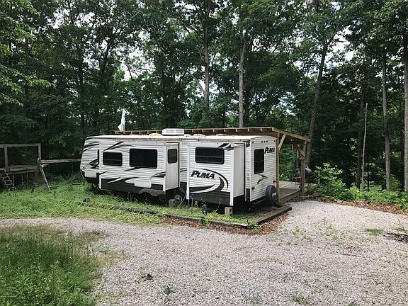 Lakefront Lot on Nolin Lake with utilites (water, electric, septic system) also including 2013-32' Puma Rv with 2 slide outs, this lot has an awesome view of Nolin Lake year around, circle driveway, large covered deck for entertaining. To Remain: Boat dock per Corp of Engineers.