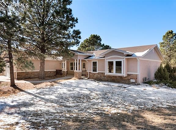 Don't miss this opportunity to own this charming ranch syle home neselted on 5 treed acres just minutes from Colorado Springs. This home boasts 3 beds, 2 baths and attached 2 car garage. Greet family and freinds with a large welcoming covered front porch and spacious entry with large closet. As you enter the home, there is a wonderful office with window seat and French doors, perfect for working or school at home! Spacious living room features walls of windows, woodburning stove, vaulted ceilings and walk out to huge composite deck. The eat in kitchen boasts SS applainces, corian counter tops and tons of storage space. Entertain easily in the formal dining room just off the kitchen and open to the living room. Garage acces from the kitchen with a spacious mud room and laundry space. You can conveniently access the mud room from the front porch, garage as well as the back porch. The shared full bath features tons of storage and possibilities. The master is spacious with 2 closets, a window seat and attached 3/4 bath. From the living room walk out to the partially covered deck to enjoy the Colorado sunshine and room to grow. The property if partially fenced, and features an additional 2 car detached garage. Enjoy country living just minutes from shopping and entertaintment!