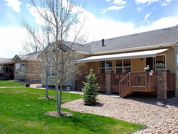 Quality Built & Meticulously Maintained! This home is MOVE IN READY! Open Floor Plan Ranch with option to finish the full basement to fit your design style! Main floor with 10' ceilings, Hardwood floors, Gas Fireplace, Custom Window Coverings & 4 Ceiling Fans. Master Suite with walk-in closet & 5 piece bathroom. Cooks will love this Kitchen with gas stove, large pantry, granite countertops, high quality cabinets & breakfast nook. Main floor laundry with sink. Private Guest Room. Office/Studio/Library with French Doors. Low maintenance deck, electronic retractable awning & gas line for grill. Mature Landscaping, Sprinkler system, invisible fence (front & backyard), & dog door. All this within walking distance to the Beautiful Aspen Lodge with indoor & outdoor pools, hot tub, tennis courts, workout facilities miles of walking/biking trails & many special interest clubs & community events for socializing. This Home is a Fantastic Value in this 55+ Community!