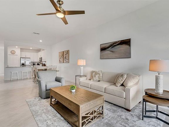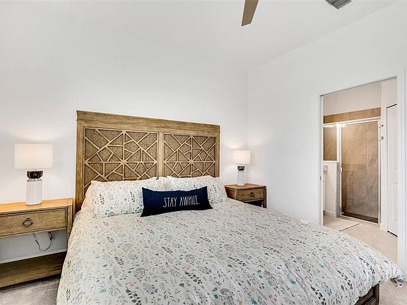 Welcome to The Sunny Day Getaway a Turnkey Furnished designer decorated 3-Bedroom, Two Car Garage Villa available for rent short or long-term. Nestled in the Northeast corner of Lakewood Ranch sits Lorraine Lakes, a wonderfully peaceful and visually impressive, gated community that has been designed to highlight the many sparkling lakes and preserve views that are the inspiration behind the name. Here you'll discover the abundance of amenities specifically selected for this location. Ideally located with all the conveniences of Lakewood Ranch at your fingertips and your choice of the best beaches, entertainment and nightlife as well as the arts and culture that have become synonymous with Sarasota and Manatee Counties. This spectacular villa Sleeps up to eight guests with a Comfy King-size bed in master, Two twin beds in first guest room, full-size murphy bed in flex room, and cozy queen size sleeper sofa in living room. For family mealtime or when you host friends and family, you'll love the gourmet kitchen with stainless steel appliances and natural gas stove, open concept, and spacious covered and screened lanai. The living/dining room has tile floors, recessed lighting to accentuate the natural light and bright feel. Enjoy your slice of Paradise Amenities include: resort-style heated pool, spa, sauna, lap pool, splash park, playground, indoor and outdoor basketball courts/volleyball courts, tennis, bocce ball, pickle ball, putting green, pool-side bar and grill, arcade, coffee lounge, fitness and aerobics facilities, social room, full-time activities director with a calendar of events Even a Fishing Pier and golf cart parking at the Clubhouse. Your choice of area restaurant, bars, & shopping within a short distance at Lakewood Main Street, Waterside Place, UTC Mall & Town Center, Downtown Sarasota, there are several resort-style Golf Courses and even Top Golf for family fun. *RATES: IN-SEASON (December-April): $6,000 per month plus taxes and fees (with a 3-month mininum reservation), 1-month In-Season rate $7,500 per month plus taxes & fees. Utilities, cable and WIFI are included In-Season. *OFF-SEASON (May-November): $3,500 per month plus taxes & fees. Also available for long-term lease of 6-12 months at a discounted rate (Water, Electric & Gas not included in long-term lease rate) *Additional fees include: exit cleaning fee ($350), Booking Fee ($100), Lorraine Lakes Registration Fee ($100) & (13%) sales & Resort taxes apply. If applicable: Pet Fee ($300) and Refundable Pet Deposit ($500) *Prices based on 2-person occupancy. Additional persons staying in the unit for a period of longer than 7 days may be considered additional occupants and subject to additional rental fees being charged and/or application and approval process if the community is governed by association rules and regulations. Your rental Agent must be advised of all additional occupants and dates they will be in the unit. Note that rates are subject to change without notice and reservations are not guaranteed until an initial reservation deposit is received.