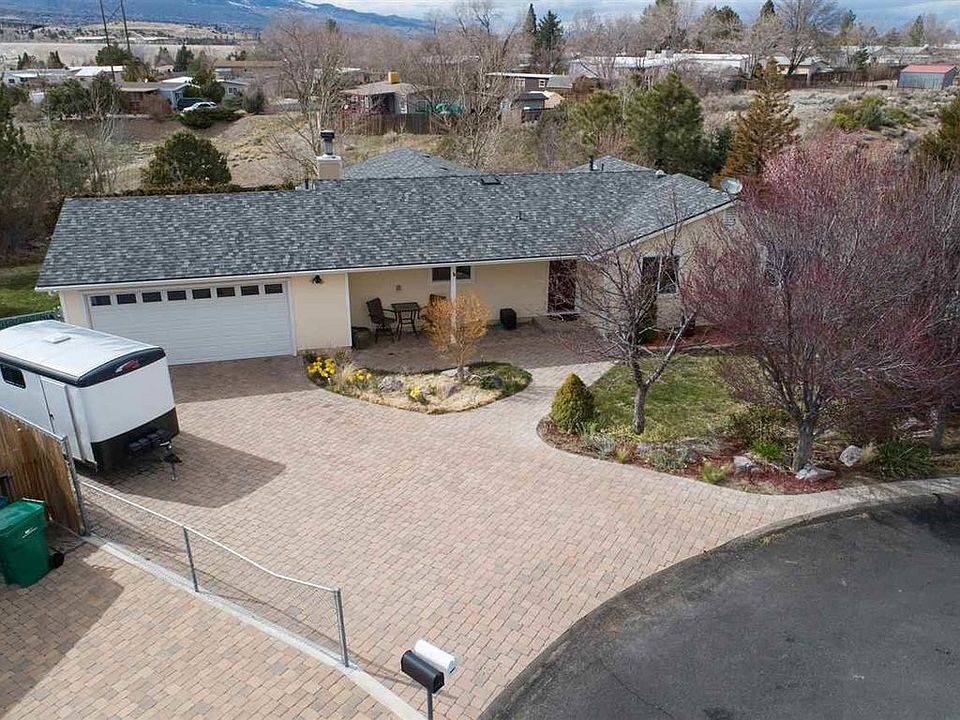 South Reno Pocket Gem with Beautiful Views! This Charming home is tucked back out of the hussle and bussle but still minutes away from city life. What Great Curb Appeal this home has! Mature full landscaping with a nice paver driveway with RV Side Access! Walk in the front door to a lovely updated home! Open and bright with natural light and neutral paint colors throughout. Walk to the right and down the hallway you will find the guest bath and Bedroom 1 that faces the outside front yard.