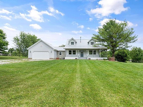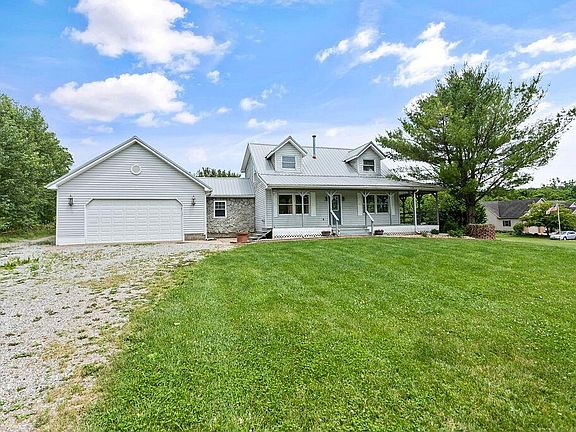 Welcome home to this beautiful 3 bedroom 2 and a half bathroom Cape Cod house on just over 5.5 acres of land with a 2-car garage and walk out basement. This home is move in ready and has a long list of updates: updated kitchen with gas stove, half bathroom off of the kitchen, large living room and dining room with large pantry, and laundry on the main level. The home also has a large utility shed in the backyard and fire pit.