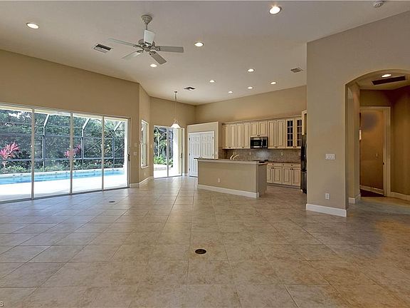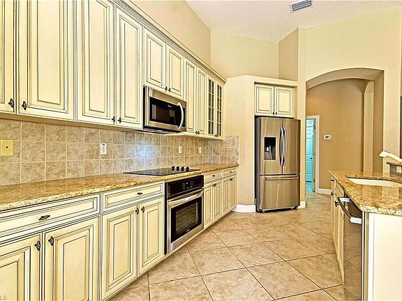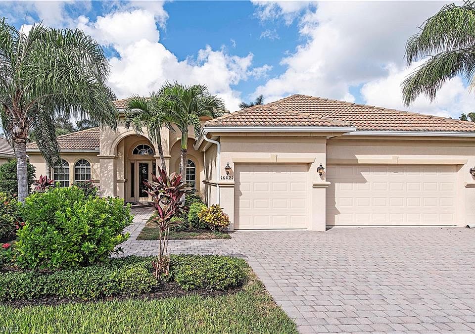 Welcome to Delasol, a highly desirable guard-gated north Naples community. This beautifully maintained "Verano" model home faces west and offers 3 bedrooms, a den (easily a 4th bedroom), 3 full baths, formal dining area and a 3 car garage! An arched foyer invites you into the sunny great room with diagonally laid tile floors. A wall of glass sliders opens onto the screened lanai with irrigated planters and a custom oversized heated pool and spa. Enjoy entertaining in the large open-concept kitchen, which features upgraded cabinets, luxury granite counters and a designer tile backsplash. The stainless steel French door refrigerator and dishwasher are almost new and a brand new microwave and oven were just installed. The den and master bedroom suite have beautiful wood flooring and the master bath offers dual vanities plus a tub and step-in shower. Community amenities include a clubhouse/social room, fitness studio, tennis, pool and more. Delasol is conveniently located close to everything and zoned for A-rated schools.