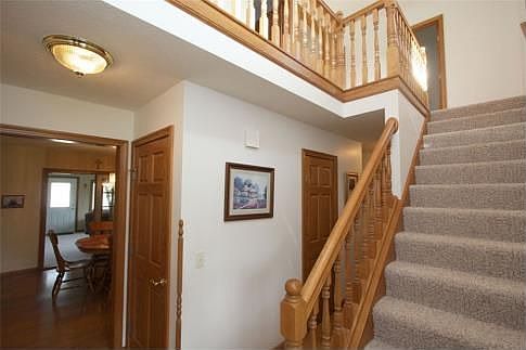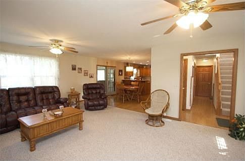 Beautiful 2 Story home situated on 5.957 country acres, meticulously maintained and features 3 bedrooms and 2.5 baths, large living room highlighted by a gas log fireplace, adjoining dining area and gorgeous oak cabinet filled kitchen with major appliances and breakfast bar, convenient main level laundry room, relaxing first floor family room plus a finished lower level with second family room and office space, master bedroom suite with deluxe private bath, attached 2 car garage plus a 5 bay detached garage, whole house generator, natural gas forced air heating and central air conditioning, low maintenance exterior, a must see home, priced to sell at $235,000