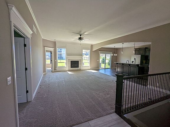 Beautiful two bedroom villa home located on a corner lot. Features include a cozy fireplace, a covered patio, granite countertops, and custom birch cabinets. The unfinished basement is roughed in for a ¾ bath and wet bar. Enjoy the open floor plan of the kitchen and dining area, a living room, two spacious bedrooms, an office with French doors, and two baths. Two car garage, landscaping, and underground sprinklers.