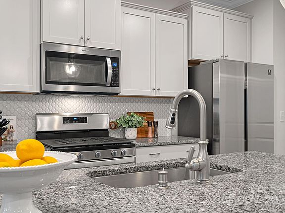 Beautifully maintained 3 BR, coveted end unit townhome with oversized garage on peaceful street in popular Magnolia Walk! Entry foyer leads to a spacious, modern kitchen featuring a large island, granite countertops, stainless steel appliances, gas range & walk-in pantry. The open-concept floor plan flows seamlessly to dining area & great room for gathering complete with fireplace. Luxury vinyl plank flooring extends throughout the light modern neutral main level. The second floor features a flexible loft area—ideal for home office, playroom, or lounge space—leading to the large private primary suite with dual vanities and a sleek, glass-enclosed shower. Two additional bedrooms, full bath and laundry room on upper level. Enjoy the ease of low maintenance living with landscaping included in HOA plus this ideal location with quick access to nearby walking paths & close to top-rated restaurants, shopping, & quick connections to I-77 & I-485. Turnkey offering with all appliances included!
