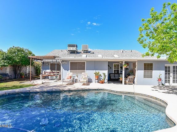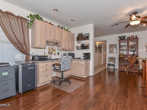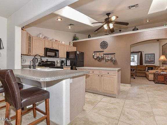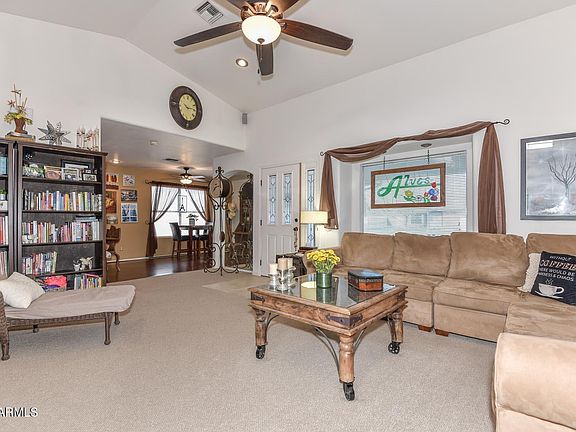 Super sharp well maintained home in great location, on dead end street.. Two bedrooms + large office (was previously a 3rd bedroom), 2 full baths, and weight room/bonus room.Large open kitchen with island and breakfast bar. Carpet and tile updated in 2021 giving the home a fresh look..Super backyard with sparkling pool with newer pebble sheen surface. Built-in BBQ. Pergola. Bring all your toys! RV gate and lots of slab RV parking + 2 carport. No HOA! Exterior paint 4yrs ago. New Trane heat pump 2016. This home also has an evap cooler. Vaulted ceilings & 4 skylites give the home a brite & airy feel.TV system stays- receiver & surround sound speakers (not tv).First American Home Basic plan home warranty included for the buyer. Weight room/bonus room isn't vented but has a window AC.