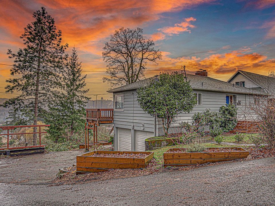 Multi - generational or Duo living or possible Air B&B (buyer due diligence) Mid - Century Modern Daylight Ranch.Open Bright Floor Plan, newer appliances, washers / dryers, refrigerator included, original hardwood floors, amazing large picturesque windows to watch the start of a new day & end of an evening, with West Hill Views. Large 1/3 acre lot with raised beds, firepit, patio and deck. Room for parking, RV & 2 car garage.Busline