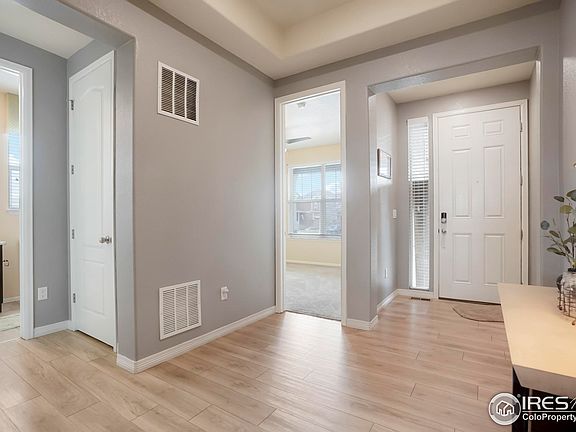 Welcome to this beautiful home on a desirable corner lot. With brand new carpet in all the bedrooms and sleek new LVP flooring on main level, this home exudes warmth and elegance. As you step inside, you'll immediately appreciate the open floor plan that flows effortlessly, perfect for both daily living and entertaining. The spacious living area features a cozy gas fireplace, adding a touch of comfort and ambiance to the space. The kitchen is truly the heart of the home, showcasing stunning granite countertops, a large kitchen island, and a stylish tile backsplash. Equipped with stainless steel appliances and a convenient pantry, it's both functional and modern. Whether you're preparing meals or hosting guests, this kitchen is sure to impress. Adjacent to the kitchen, the new sliding glass door leads to the covered back deck, creating the perfect spot to relax and enjoy the outdoors. The primary suite is a true retreat, featuring a luxurious double vanity with granite counters, a large walk-in shower, a soaking tub for ultimate relaxation, and an impressive walk-in closet. The attention to detail in this home continues throughout, with generous space, ample storage, and modern finishes.Energy efficiency is a priority in this home, thanks to the addition of solar panels that help reduce utility costs and reduce your environmental footprint. Enjoy the benefits of clean, renewable energy while maintaining comfort year-round.Outside, the home continues to impress with a covered front patio and a 4-car heated garage, offering plenty of room for vehicles and storage. Plus, the unfinished basement provides an incredible opportunity to customize the space to suit your needs. With all these features and more, this home is truly a must-see!Just a short walk to the exclusive 9 acre community park, I-25 and E-470 are minutes away. Easy commute to DIA, Denver and Ft Collins. Buyer will need to take over Solar Contract.