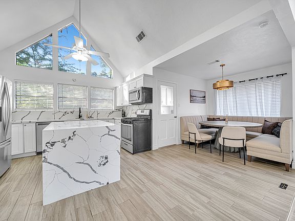 This fully renovated 3,100 sq. ft. home blends comfort and style with thoughtful upgrades throughout. Featuring luxury vinyl plank flooring, high ceilings, and an open-concept layout, this 4-bedroom, 3-bath property offers the space and flexibility perfect for remote work, traveling professionals, or families relocating to the area. Monthly rent is $4,999 (fully and beautifully furnished) and includes ongoing maintenance costs (pool care, trash and lawn care, some utilities like sewage etc). Major utilities (electricity, water, gas) are billed separately based on usage. Each bedroom includes plush bedding, blackout curtains, and spacious closets. The modern kitchen features stainless steel appliances, quartz counters, and ample storage for extended stays. The living room is filled with natural light and includes a large smart TV with streaming access. Smart home features include a keyless entry system, smart thermostat, and high-speed Wi-Fi. The home is energy-efficient with central heating and cooling, in-unit laundry, and ceiling fans throughout. Outside, enjoy a private heated hot tub, resort-style pool, and a 4-hole putting lane. The detached game room/clubhouse features arcade games and backyard views perfect for entertaining or decompressing after work. Driveway and off-street parking included. Located just 15 minutes from The Woodlands, major hospitals, and the ExxonMobil campus. Pet-friendly (1 small dog or cat allowed), with refundable deposit and monthly pet rent. Whether you're on assignment, working remotely, or in between homes, this move-in-ready property delivers both convenience and elevated comfort. Lease Term: 2 week minimum, flexible week to week Pets: Case-by-case with approval + pet deposit Parking: Driveway and street parking included Smoking: Not permitted indoors