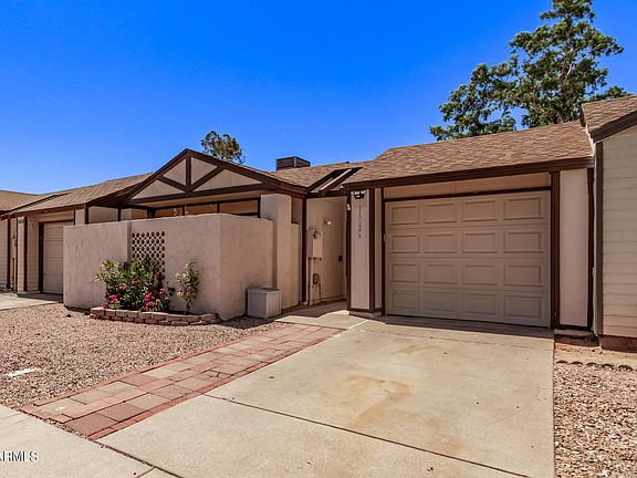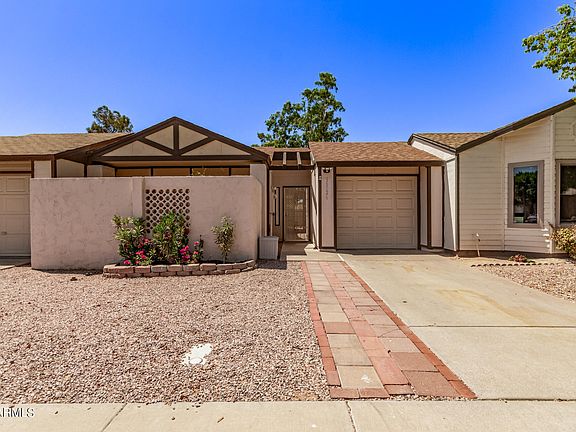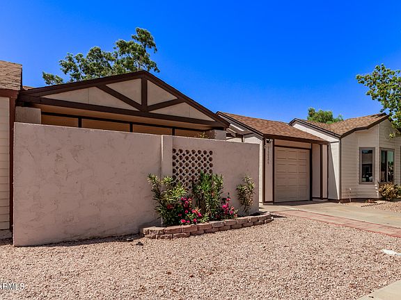 Home, sweet home! Comfort meets practicality in this charming unit in the peaceful Laurelwood Park. Providing 2 beds, 2 baths & detached 1-car garage. Inviting interior showcases vaulted ceilings, abundant natural light, a neutral palette, and wood-look tile floors w/soft carpet in bedrooms. You'll love the semi-open layout, which perfectly balances privacy & connectivity! The kitchen features built-in appliances, wood cabinetry, & a breakfast bar. The primary bedroom has a private bathroom & sliding doors to the back, while the secondary bedroom offers French doors that open to its private yard. Discover the backyard boasting a covered patio w/wood plank flooring & wooden lattice walls! There is also an open patio where you can enjoy BBQ. Great Chandler location! Make this gem yours!!