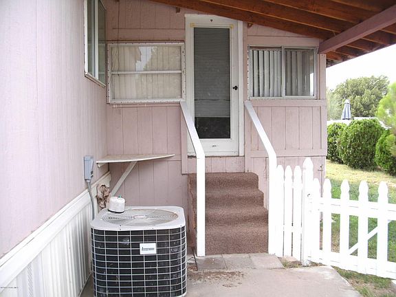 Newer carpet and large 2 bedroom with den, possible 3rd bedroom. Fantastic view out living room window. Two full baths and enclosed porch for hobby room.Total electric, no propane. Room to park RV. Cover carport and several sheds. Fence backyard. Central A/C. Altitude 3700 feet for mild winters.