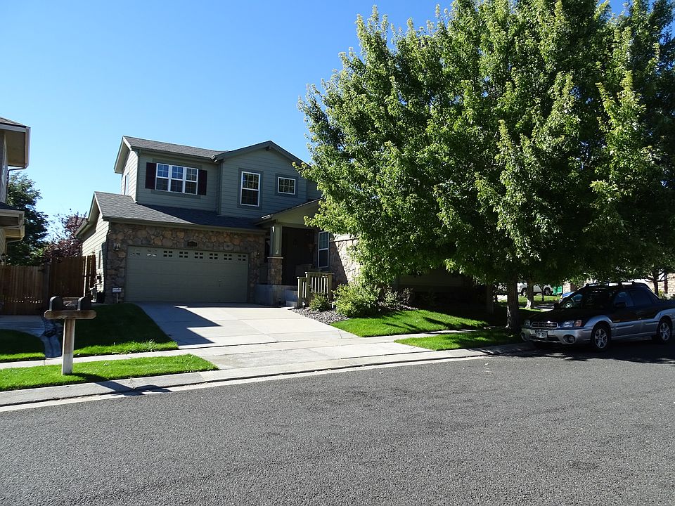 This spectacular home has beautiful style and custom finishes that are sure to please-only two models in Fronterra Village. The open-concept floor plan is amazing and boasts 2124 sq.ft. of quality living space. The kitchen is amazing with upgraded cabinets, pantry, Corian counters, and extended hardwood floors. The perfectly situated family room has soaring ceilings, beautiful lighting, gas fireplace and equipped with surround sound. The spacious main floor master bedroom is a must see. This amazing area has a vaulted ceiling, hardwood floors, huge walk-in closet a luxurious five piece master bathroom. The main level also has a office / guest bedroom, guest bathroom with shower enclosure and a convenient laundry area. The second level has two large bedrooms, a full bathroom, and loft area that is a perfect area for kid's homework. The backyard is an entertainers delight. With a huge flagstone patio, awning and just the right amount of grass. The 1236 sq.ft. basement is ready to finish. Located on an amazing corner lot, this home has it all. Just minutes from E470, DIA, shopping, restaurants and more!