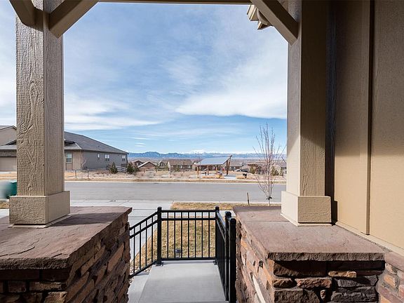This Near New CalAtlantic home is a one of a kind. Unobstructed Sweeping Mountain Views, across from park and next to green belt and trails, Great room with beautiful fireplace wall and built-ins, Gourmet kitchen with double ovens, gas cooktop, vent hood and built-in microwave and upgraded cabinets, walk in pantry, large center island with quartz counters. Spacious master bedroom with lots of windows and dual closets. Master bath with split vanities and large soaking tub and shower with Breathtaking Mountain Views. second floor laundry room with laundry sink. Professionally landscaped back yard, Oversized Patio, Mud room off 3 car garage, Great city light view at night. Full unfin bsmt w/rough plumbing and 9 ft ceilings. Short walk to Prospect Ridge Academy and Parkside Community Center. Energy Star Certified and HERS rated.