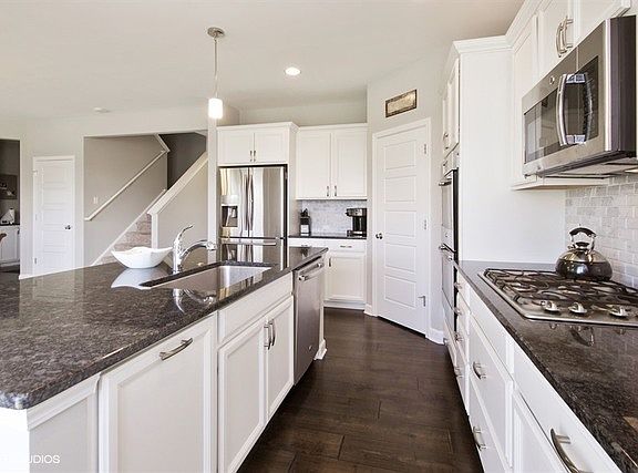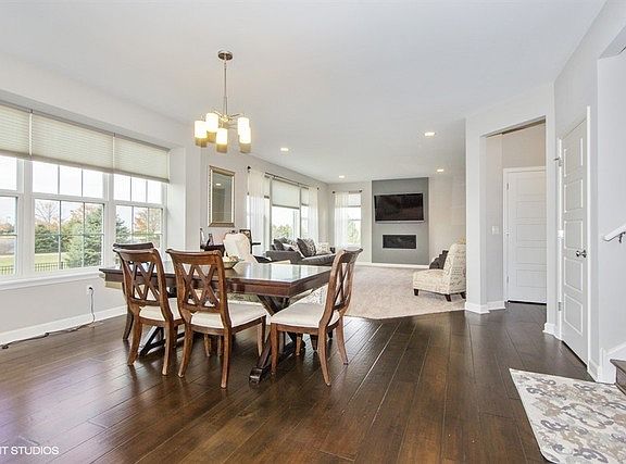 Buyer's Gain!!! Seller's loss! You will not find a better deal than this! Owner hates to leave this 1 year old Springbank Crane Model that sits on a premium lot right next to the Aquatic Center,3 car garage w/concrete driveway. Large open floor plan. Top of the line builder's upgrades Chef's kitchen with built in double ovens, granite counter-tops, crown molding, large drop sink, marble back-splash, walk in pantry. Liv rm has 42' linear direct gas fireplace. Hardwood flrs with upgraded base board in kit, foyer, din. Luxury Owner's Spa Bath. 2nd flr Laundry. Walk-in closet in bedrooms'. Upgraded Full Basement. Not only did Sellers do all of the builder's upgrades- They added over $20,000 in the last year with putting in a full fenced yard,16x36 brick paver patio with fire pit, sealed painted basement flr, epoxy garage flr, Signature barn door for den, custom closet cabinets in mstr., custom graber blinds throughout whole house, tinted windows back side of house, etc... Must see!!!